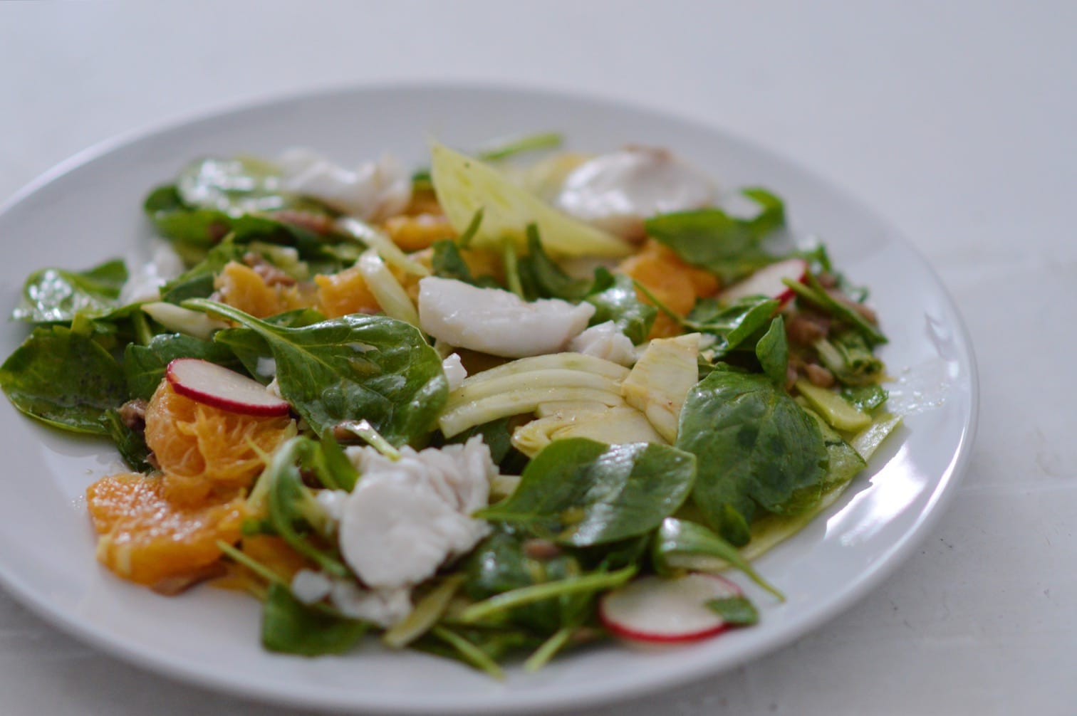 Si ya no puedes más de las ensaladas lechuga, tomate y cebolla, si no eres muy fan del pescado o si quieres probar verduras como el hinojo y no sabes cómo, ¡no dejes de darle una oportunidad a esta receta! De verdad que te va a sorprender y mucho lo rica que está. La mezcla de texturas, sabores y aromas es fresca e innovadora.