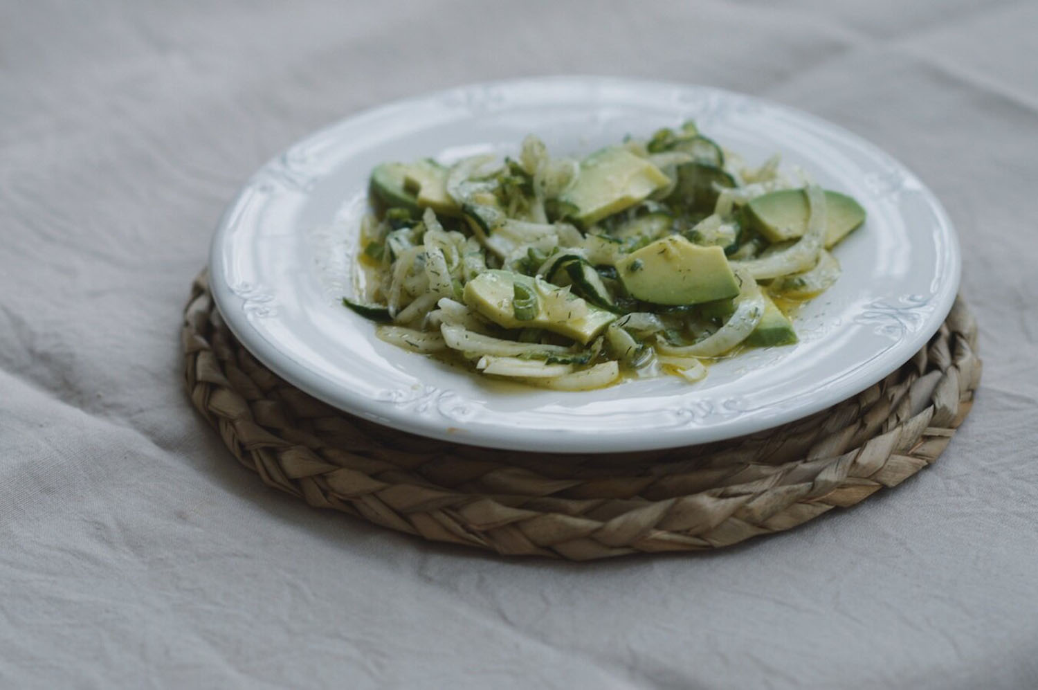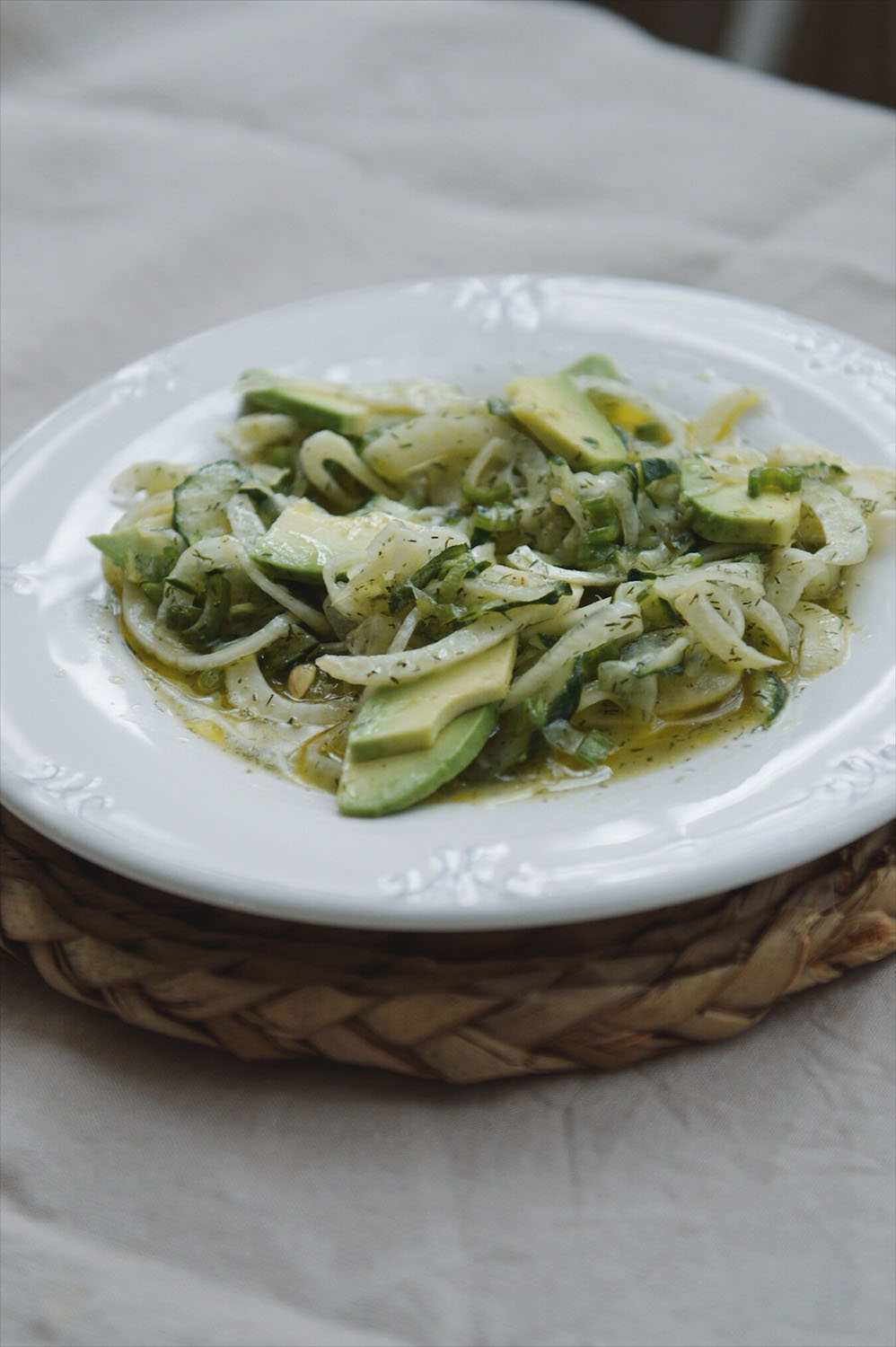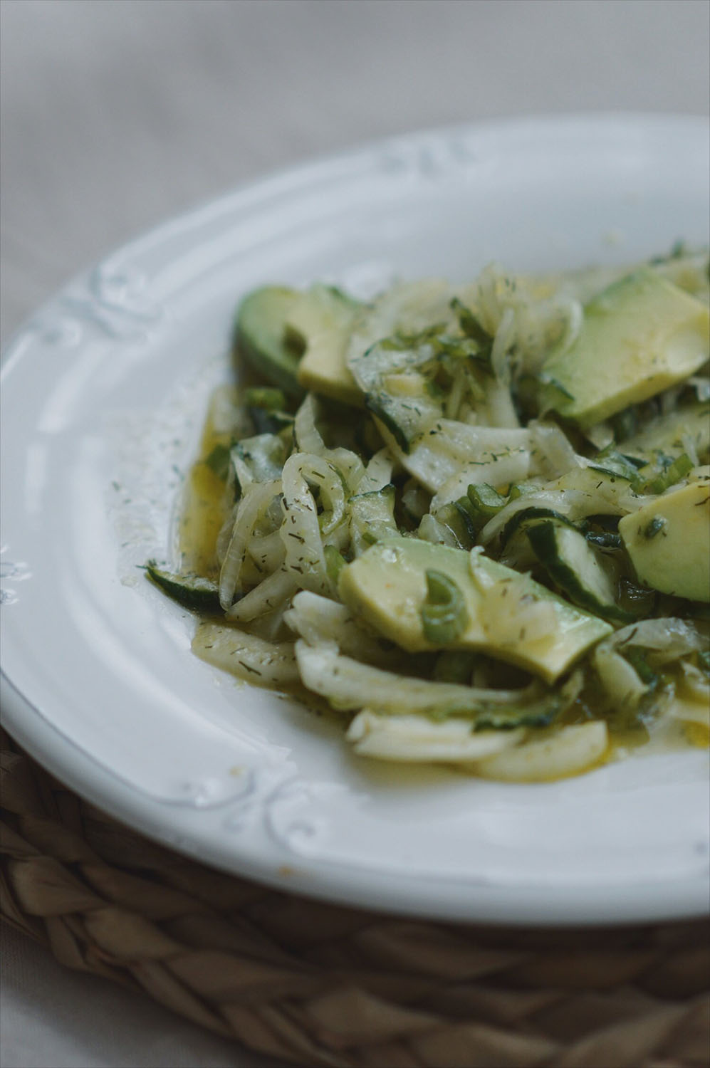 Esta ensalada es fresquita y crujiente gracias al hinojo. Y no te preocupes porque el ligero sabor anisado queda muy maquillado por el resto de ingredientes, especialmente por la hierba estrella que le da el toque mágico al plato: el eneldo. Te recomiendo encargarlo y usarlo fresco pero con eneldo seco también queda muy bien.